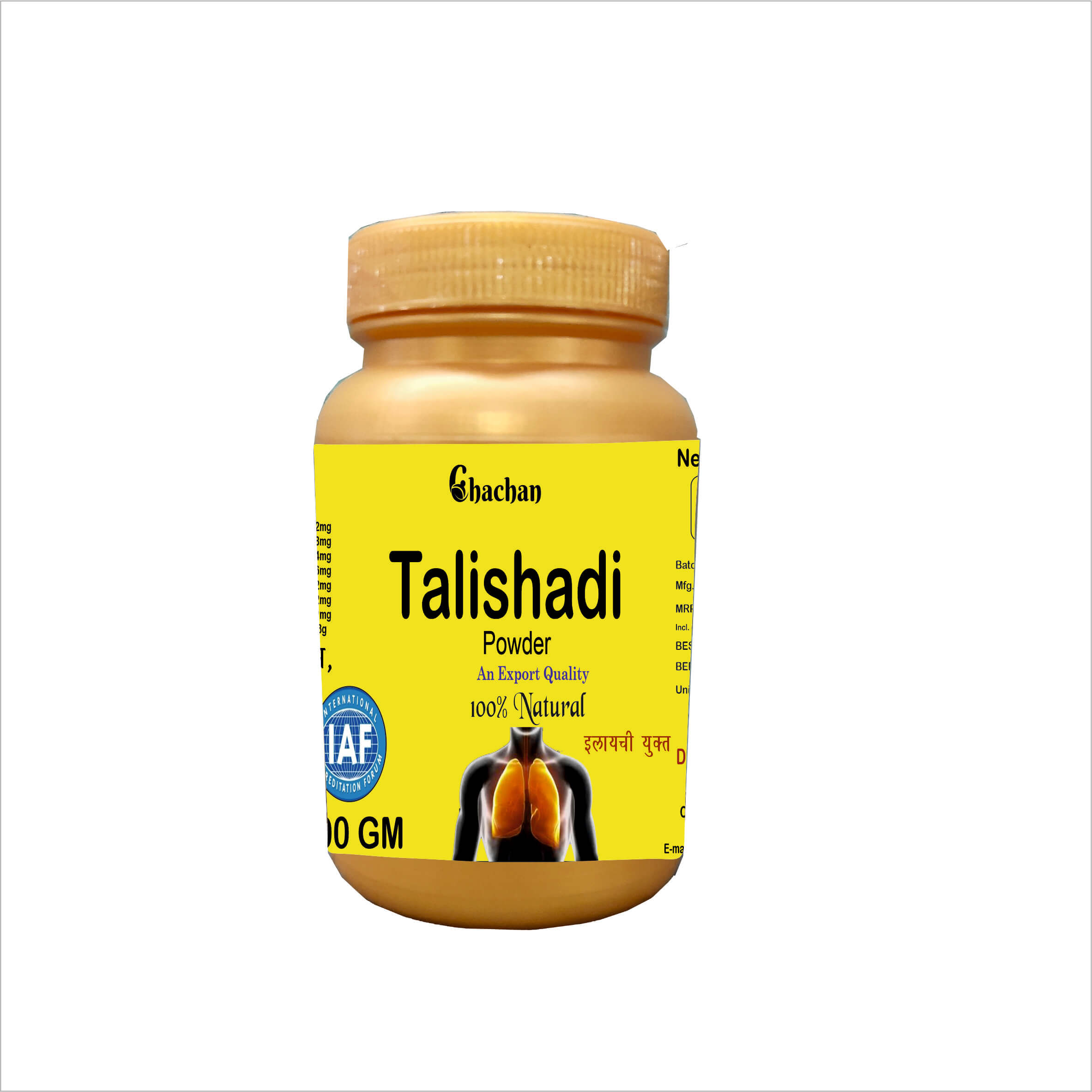 CHACHAN TALISHADI CHURAN holds high significance in treating the common cold, sore throat, cough and flu symptoms. It also reduces chest and nasal congestion, gets rid of excess catarrh particles and stops nasal discharge. It is also highly effective in treating asthma, bronchitis, sinusitis and other respiratory illnesses.